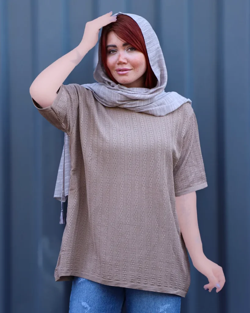 تیشرت يقه گرد بيسكوييتی مردانه 0840