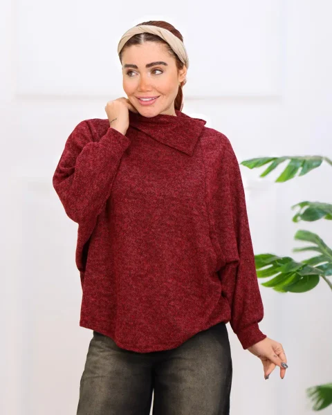 بلوز يقه دراپه بافت آستين كيمونو زنانه 1170