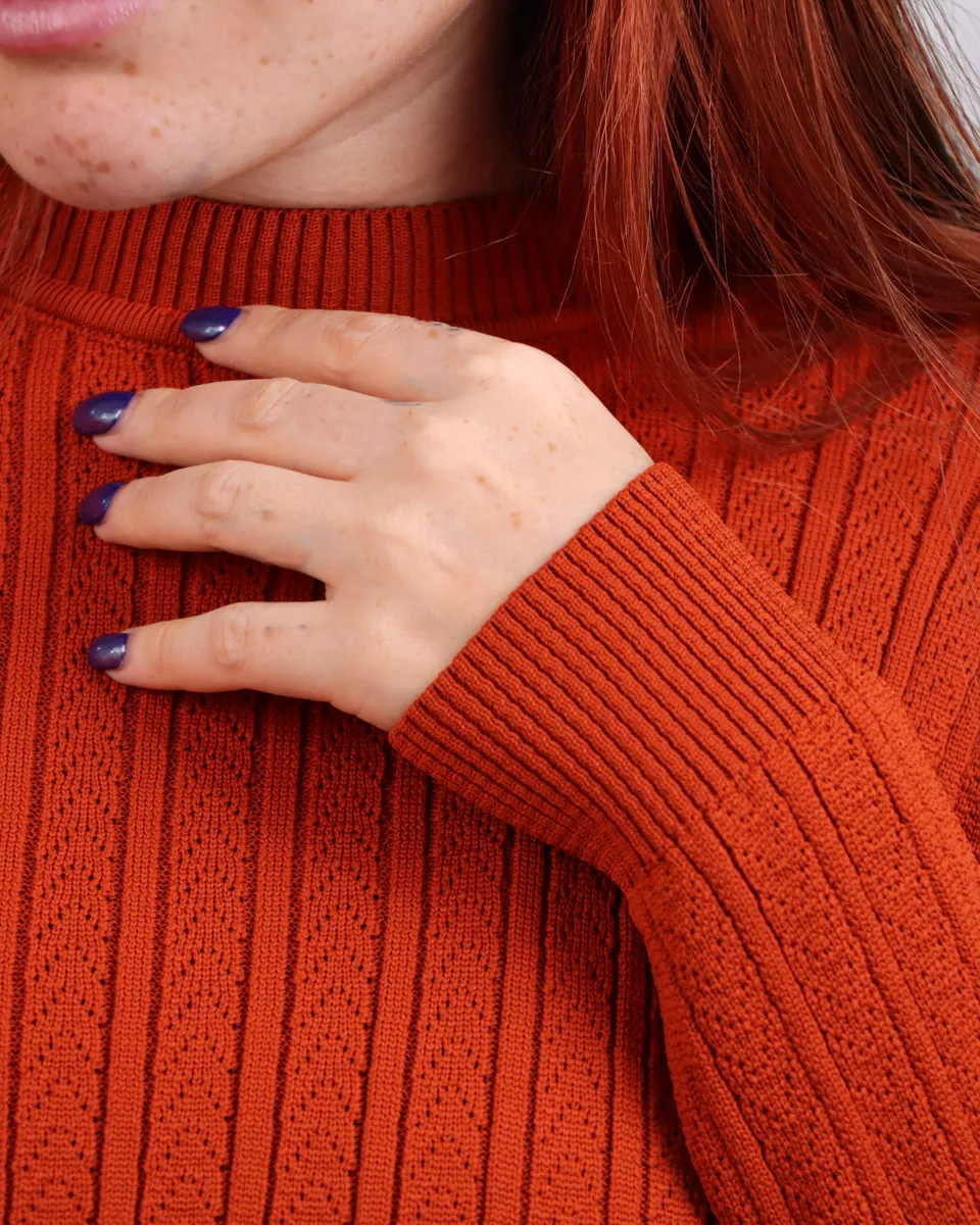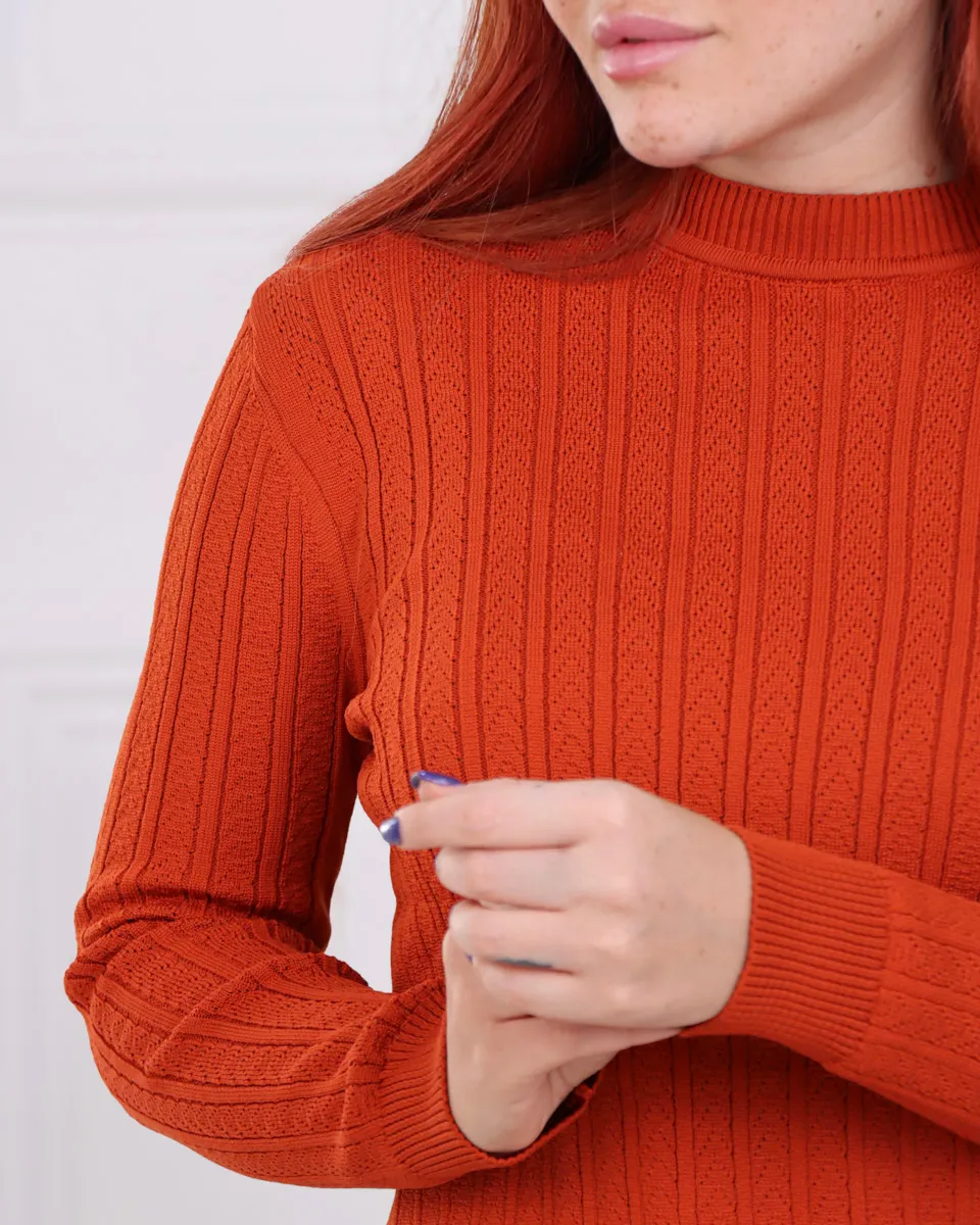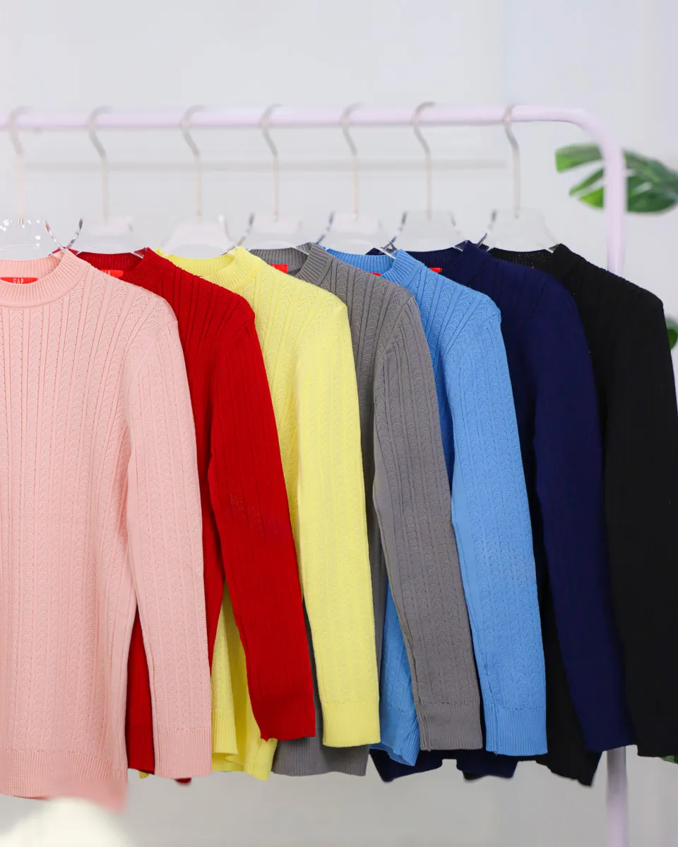 با پلیور بافت یقه گرد ، روزهای پاییزی و زمستانی رو با گرما و جذابیت بیشتری بگذرون! این مدل با بافت ظریف و کشباف عمودی، فرم بدن رو زیباتر نشون میده و به‌راحتی با شلوار جین، لگ یا دامن ست میشه.