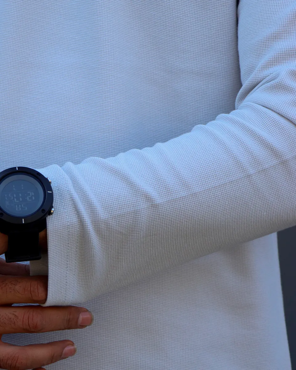 معرفی لباسی که هر مرد خوش‌پوشی باید در کمد خود داشته باشد! بلوز آستین بلند مردانه مدل امیر، پاسخی ساده و شیک به سوال همیشگی “چی بپوشم؟” است. این بلوز با بافت خاص و ترندی بیسکویتی (Waffle Knit)، نه تنها ظاهری متفاوت و جذاب دارد، بلکه به دلیل جنس پنبه‌ای، فوق‌العاده نرم و راحت است. طراحی مینیمال و بدون طرح آن باعث شده تا به پای ثابت استایل‌های روزمره، کژوال و لایه‌ای شما تبدیل شود. اگر به دنبال خرید یک بلوز بیسیک باکیفیت هستید که هم به تنهایی زیبا باشد و هم به عنوان لایه زیرین در زیر پافر، کاپشن یا پیراهن عالی عمل کند، این مدل بهترین انتخاب شما خواهد بود.