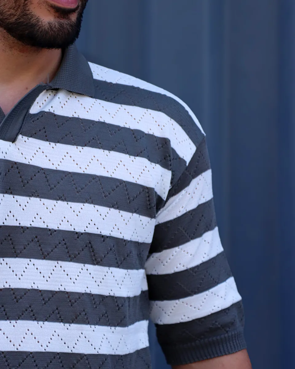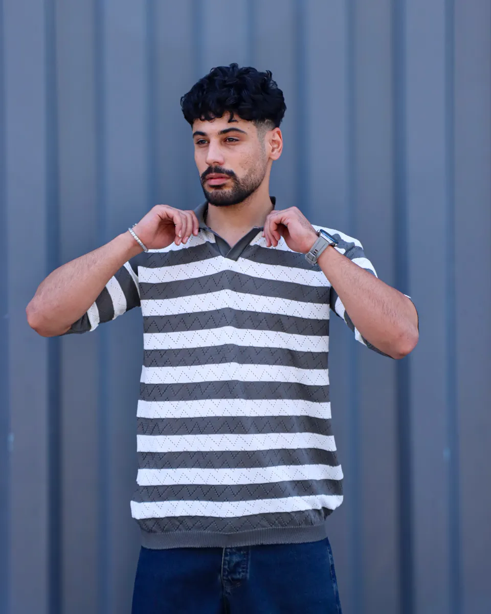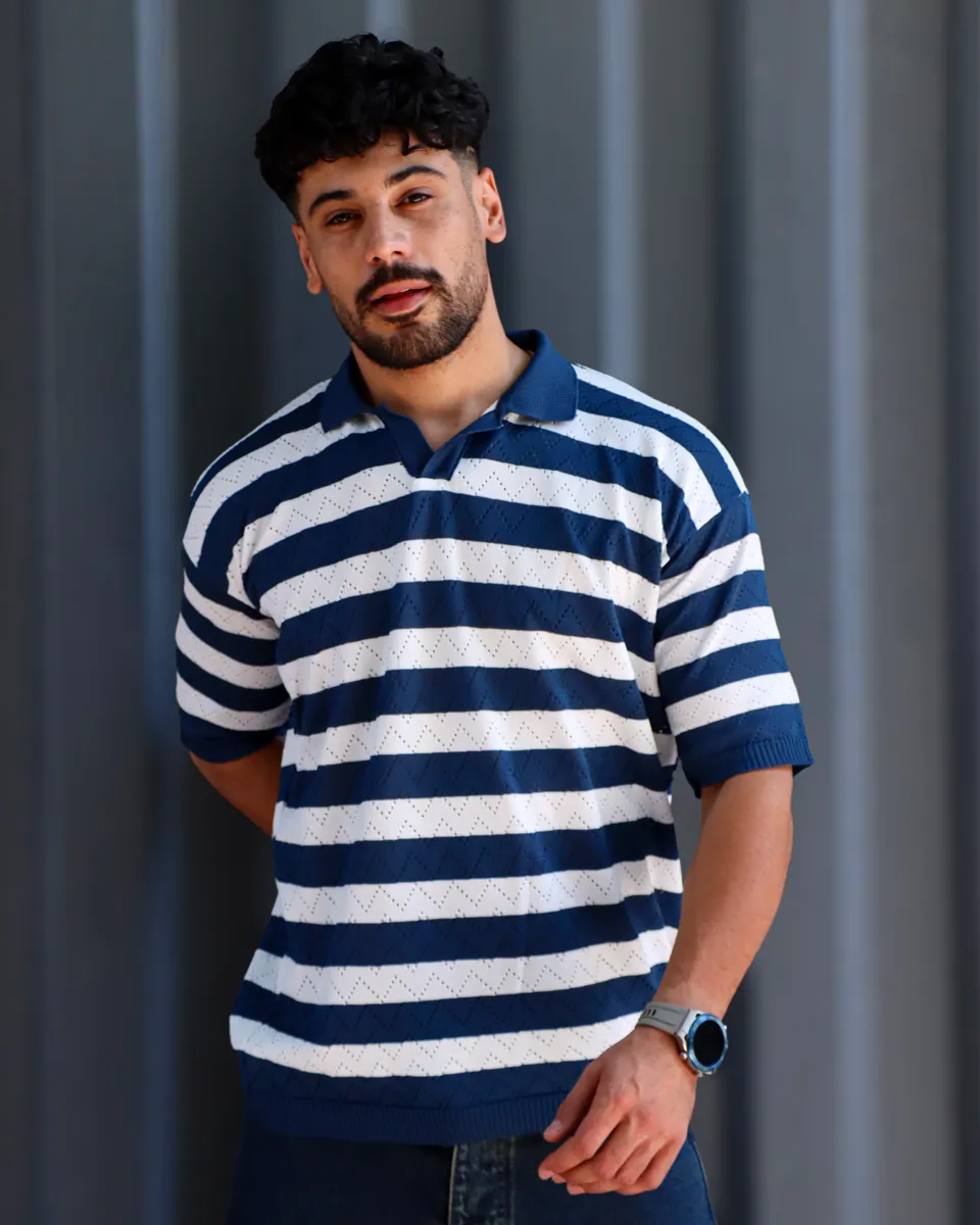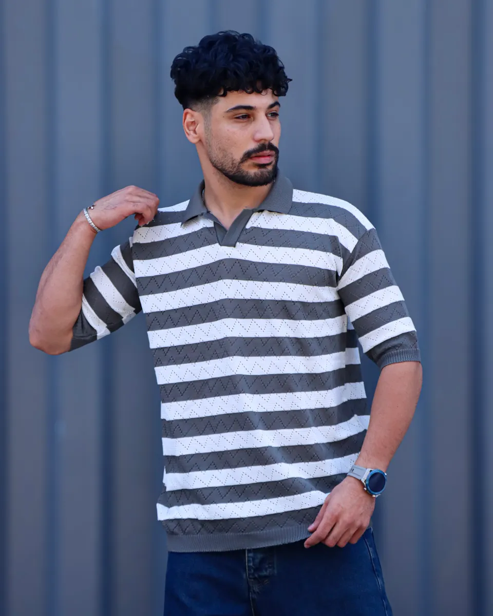 با این تیشرت یقه شکاری رینگی، راحتی و استایل اسپرت رو همزمان تجربه کن. ترکیب طرح راهراه دو رنگه، ظاهر جذاب و متفاوتی به تیپت میده و بافت خنک و سبک پارچه باعث میشه حتی در روزهای گرم هم حس خوبی داشته باشی.