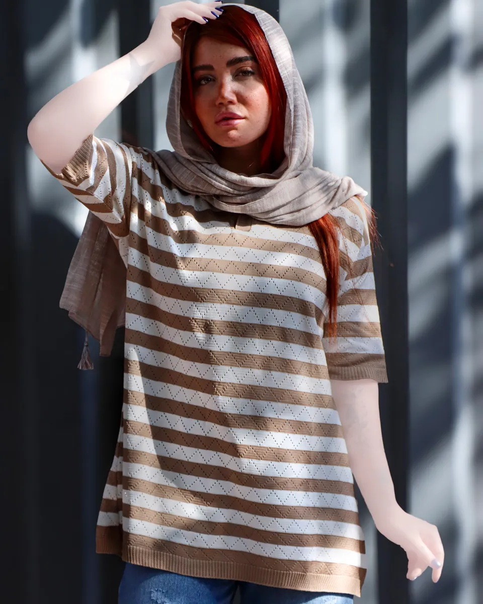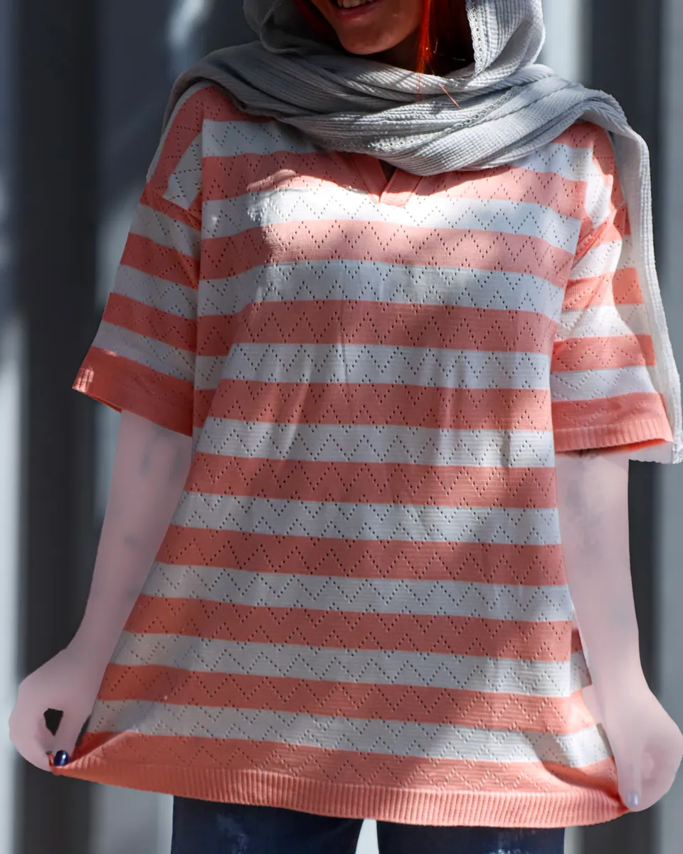 تی شرت يقه شكاری بافت رينگی 1067 | استایل آزاد و راحت برای همه روزها