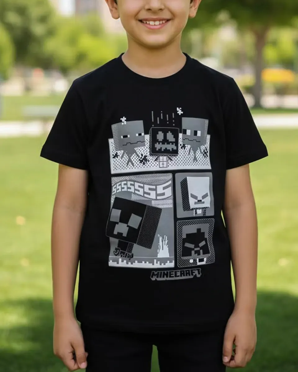 تی شرت پنبه مشکی ماينكرفت بچگانه 1059