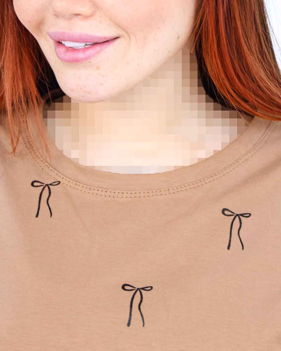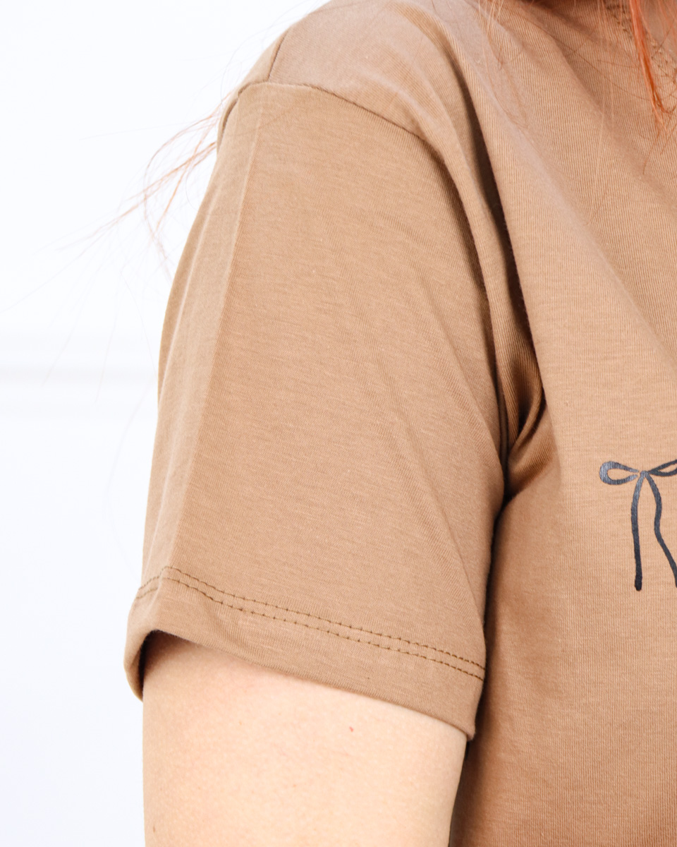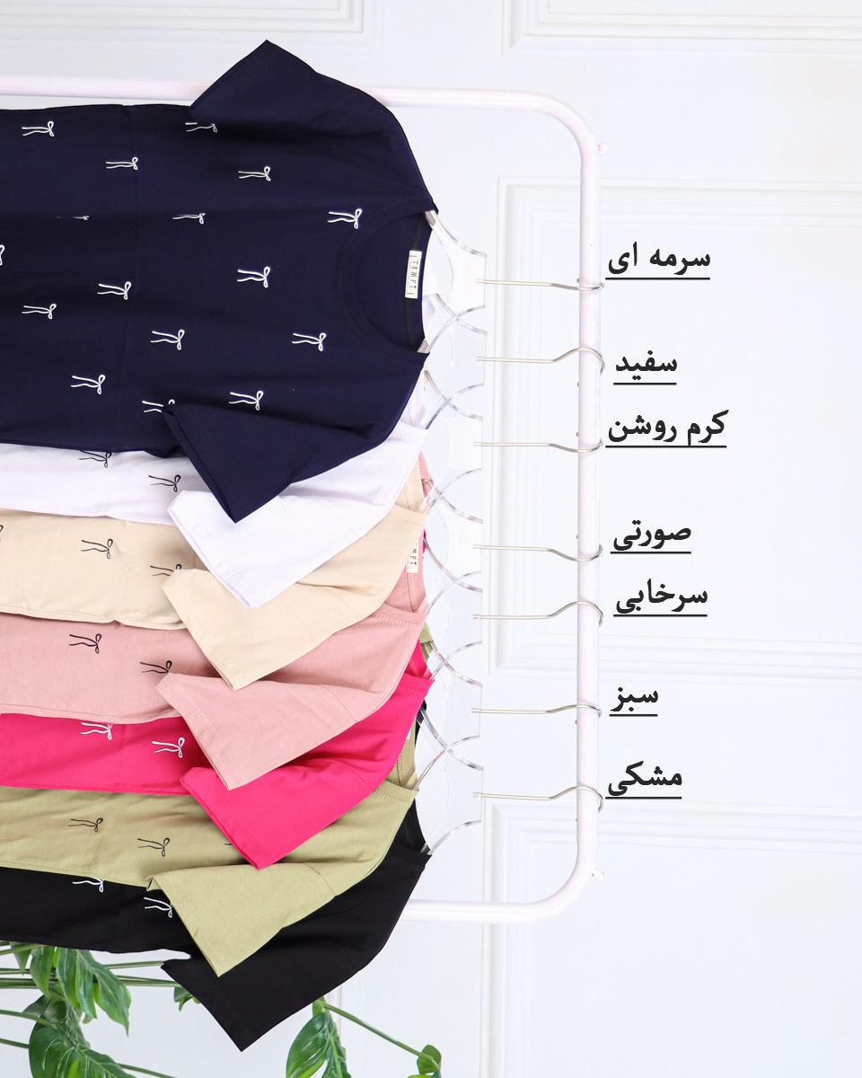 تی شرت یقه گرد آستین کوتاه پاپیون زنانه 1569