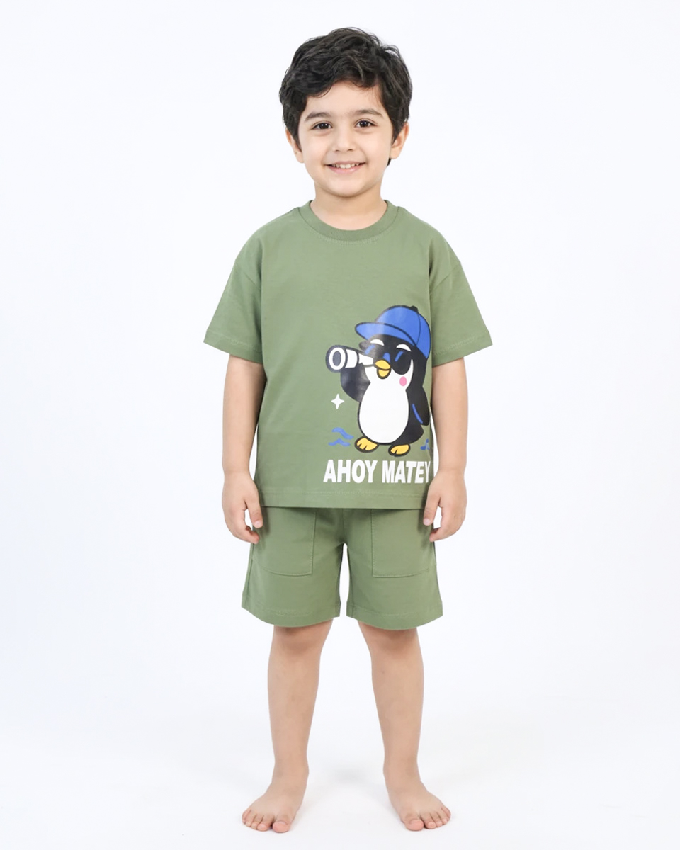 ست تیشرت و شلوارک چاپی پنگوئن 1714