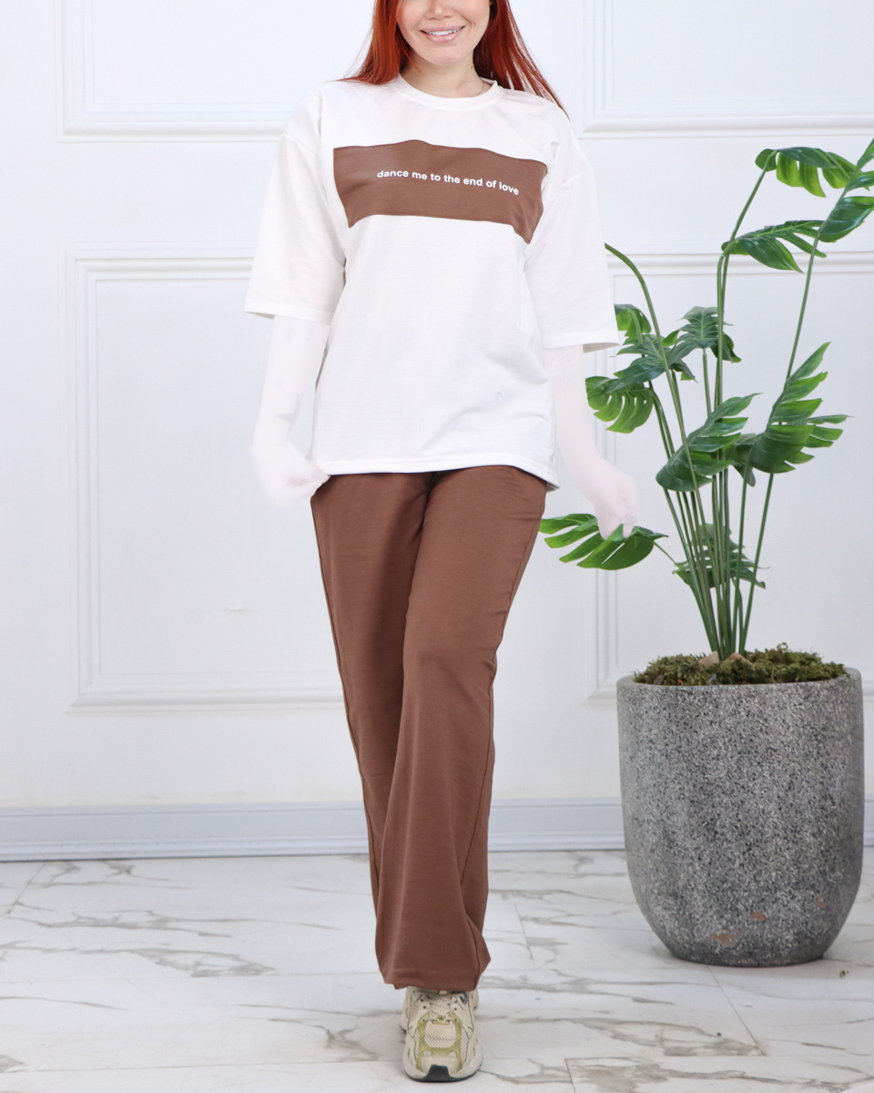 ست تیشرت و شلوار گلکسی چاپی زنانه 1596