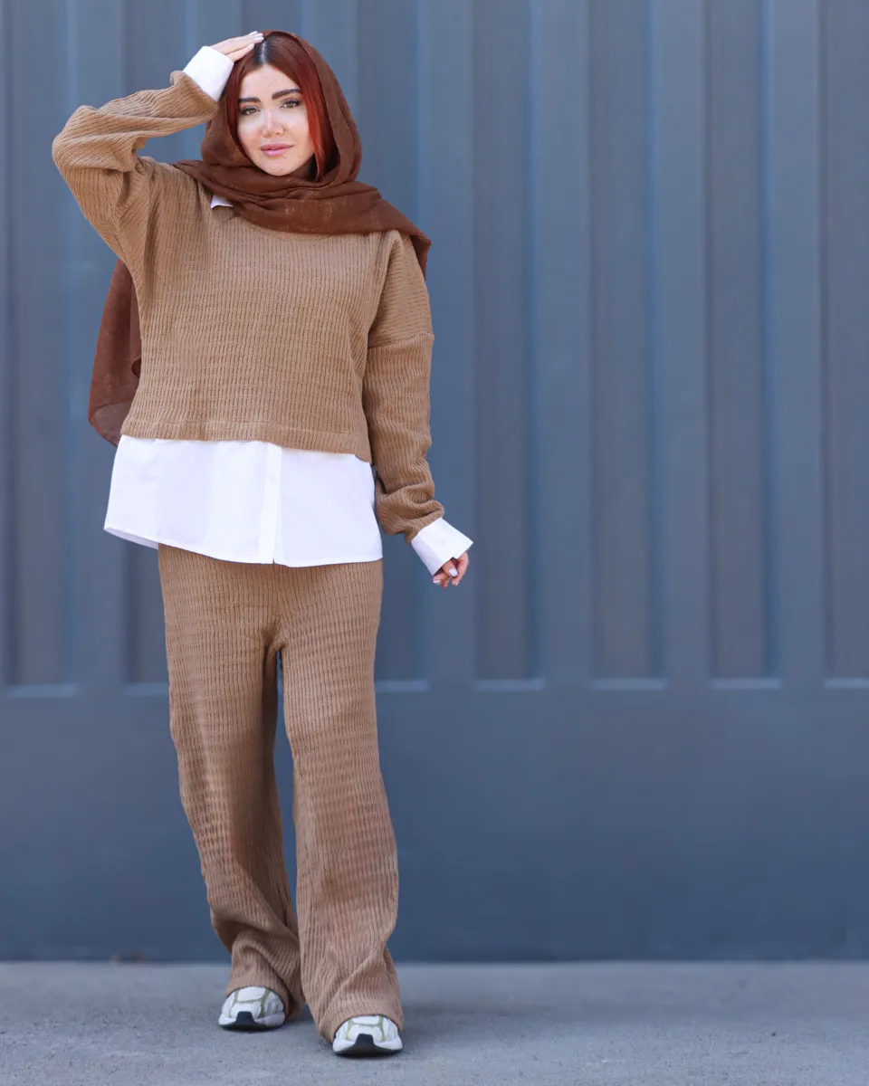 با این ست بافت خاص، هم استایل پاییزی–زمستانی خود را کامل کنید و هم در روزهای سرد، حس گرما و راحتی را تجربه کنید. جنس بافت، نرم و خوشفرم است و طرح راهراه ظریف آن جلوهای خاص و کشیده به تیپ شما میدهد.
