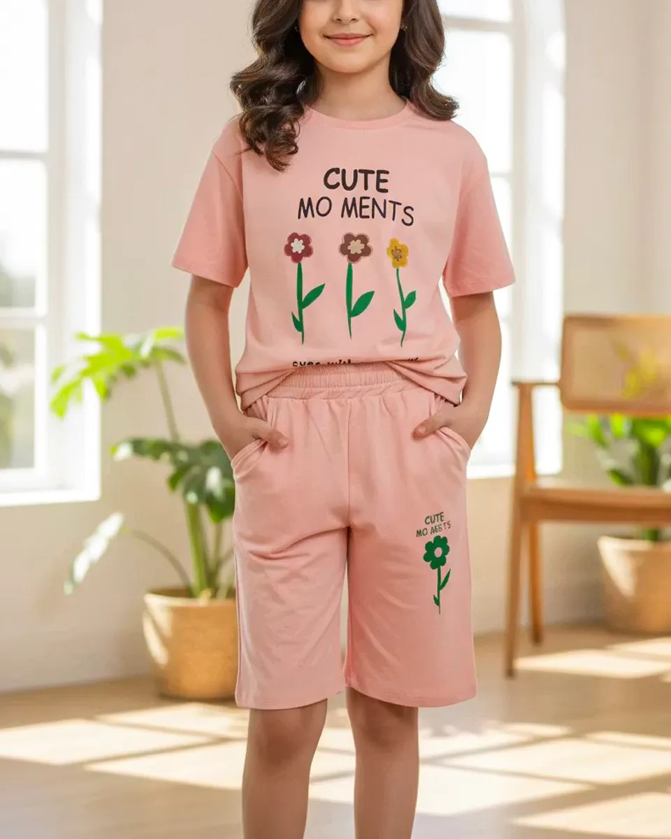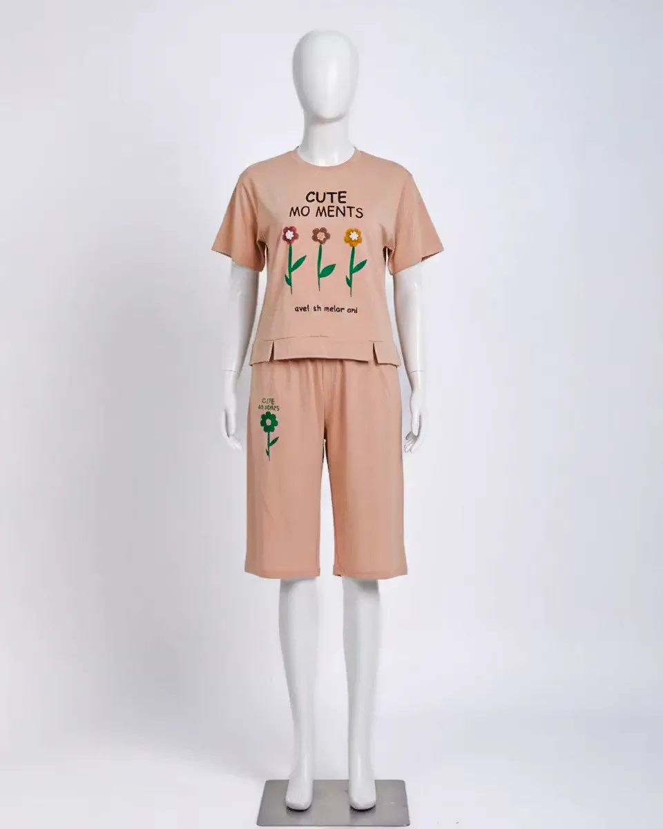 ست تی شرت و شلوارک گل 1061