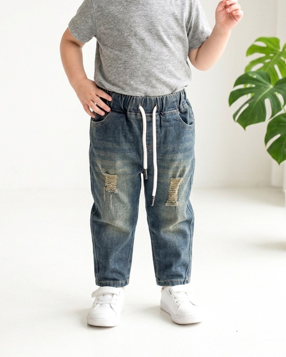 شلوار جین زاپ دار کمرکش بچه گانه 1746