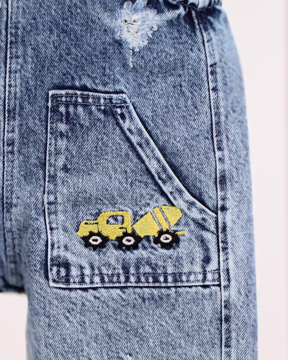 - گلدوزی کامیون: یک گلدوزی دقیق و باکیفیت از طرح کامیون میکسر روی جیب جلوی شلوار، که جذابیت اصلی این مدل است.