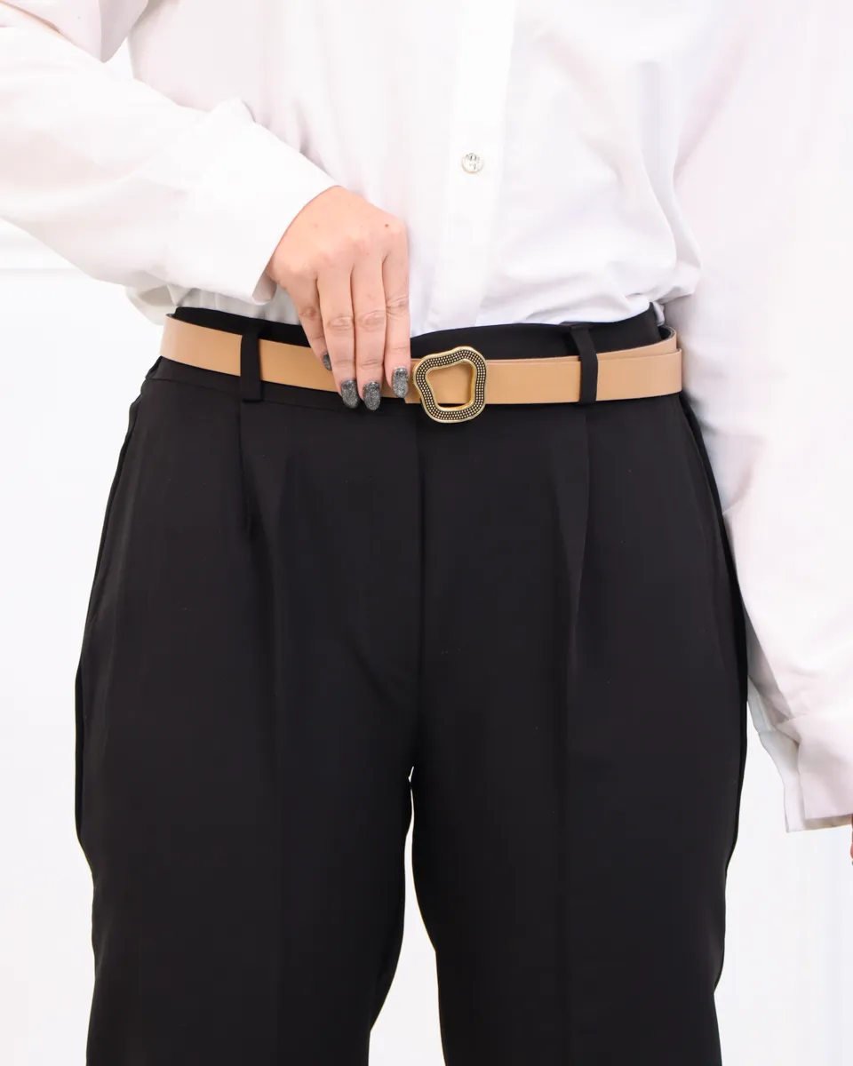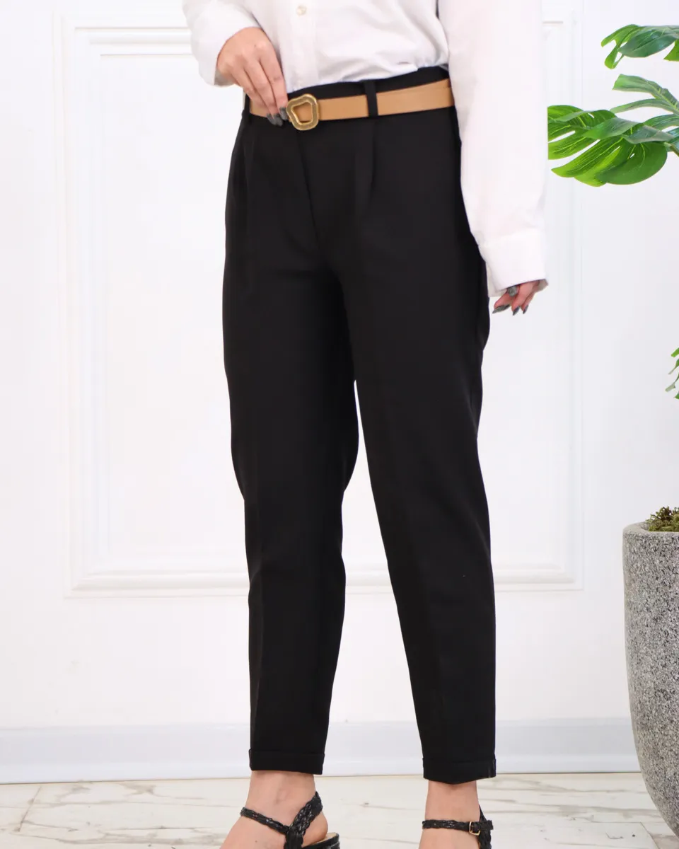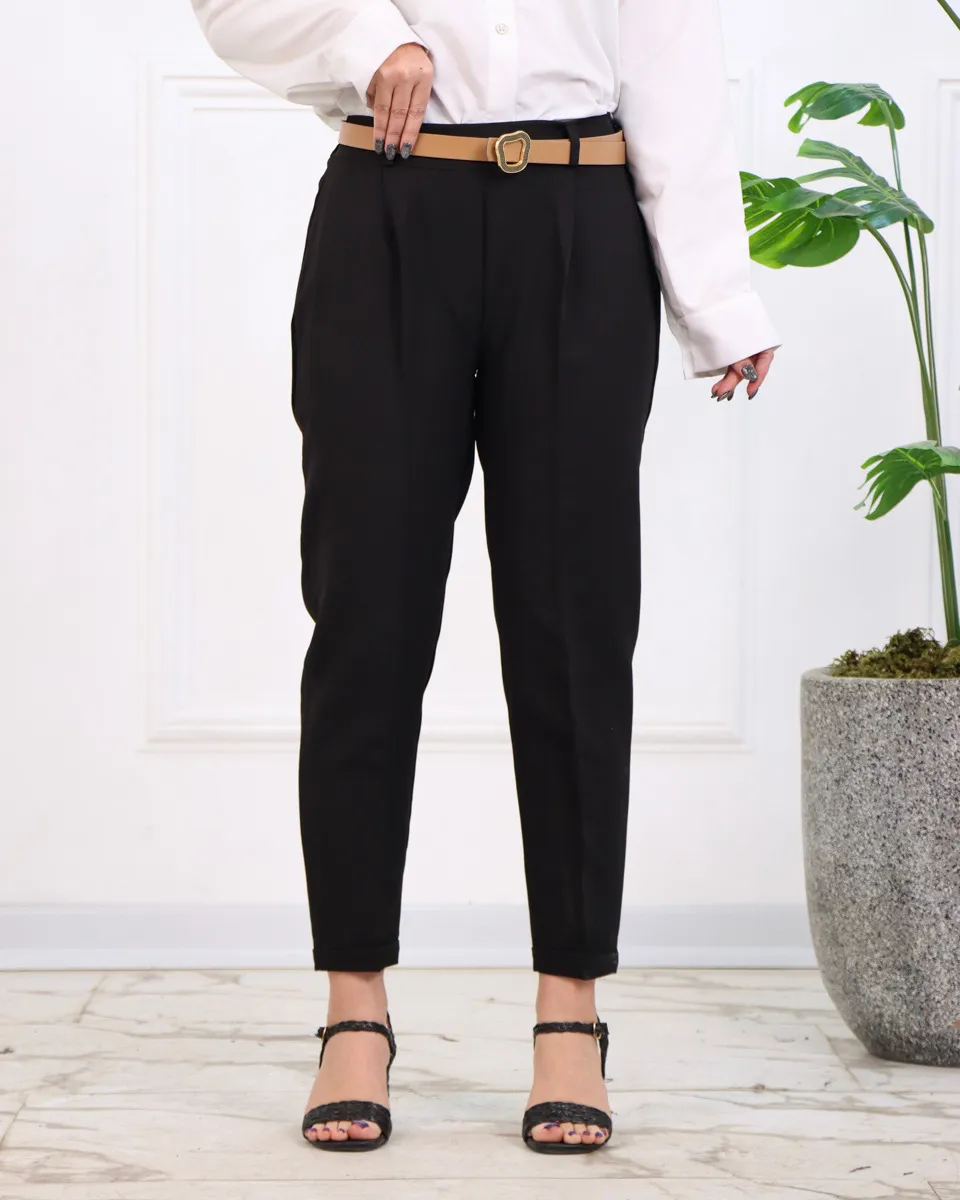 - استایل کاری و رسمی: آن را با یک شومیز سفید یا رنگی، کت بلیزر و کفش پاشنهدار یا لوفر ست کنید تا یک ظاهر حرفهای و شیک داشته باشید.