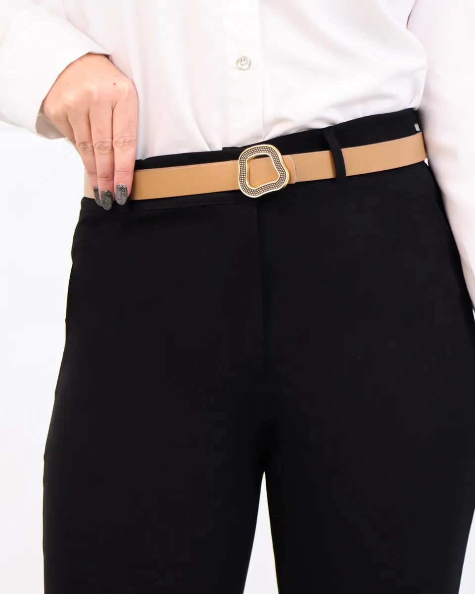 - استایل رسمی و اداری: آن را با یک شومیز سفید یا رنگی، یک کت بلیزر و کفش پاشنهدار ست کنید تا یک ظاهر حرفهای و قدرتمند داشته باشید.