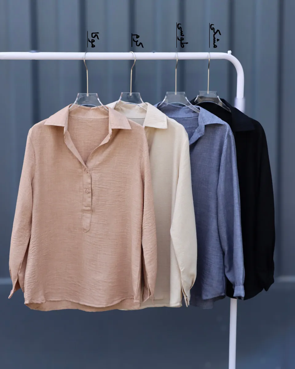 طراحی یقه هفت با دکمه‌های کوتاه و آستین‌های راحت، باعث میشه هم برای استایل روزمره و هم محیط کاری مناسب باشه. فرم آزاد این بلوز، حرکاتت رو راحت و بدون محدودیت می‌کنه.