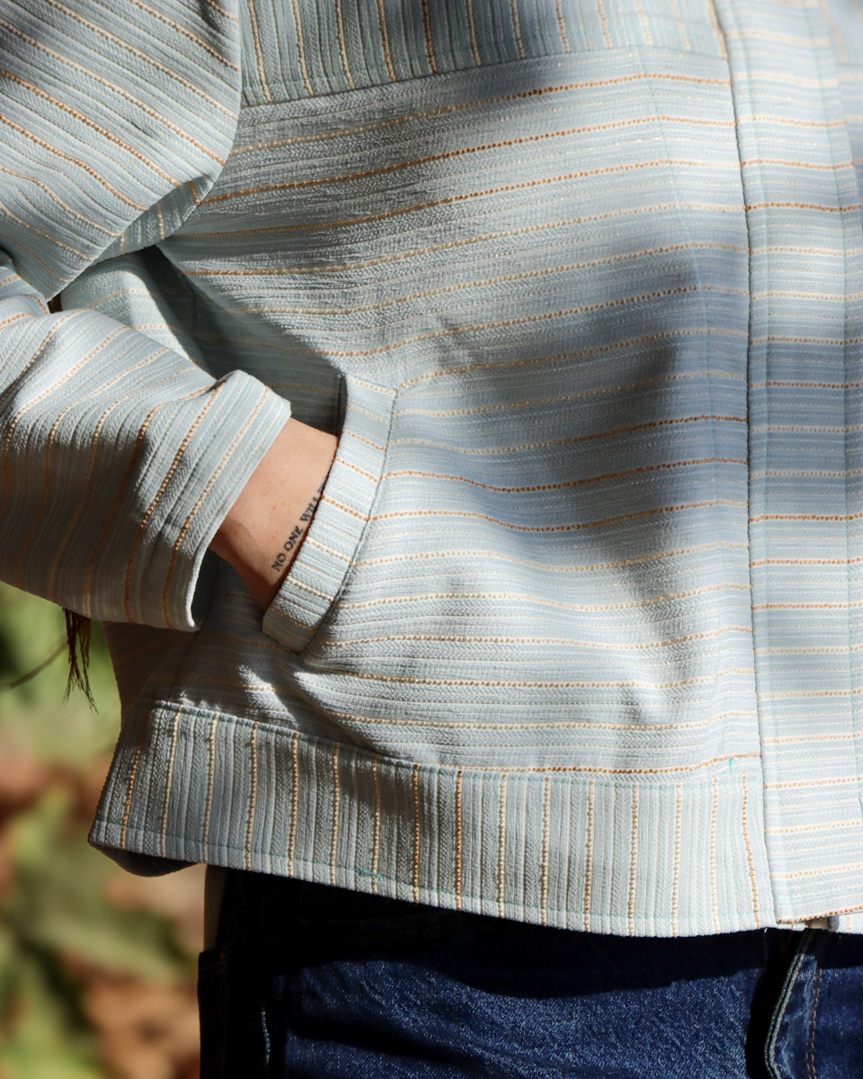 فرم کراپ (کوتاه تا روی کمر)، زیپ جلویی مخفی و دو جیب در جلو ترکیبی بینقص از زیبایی و کارایی را ایجاد کرده است.