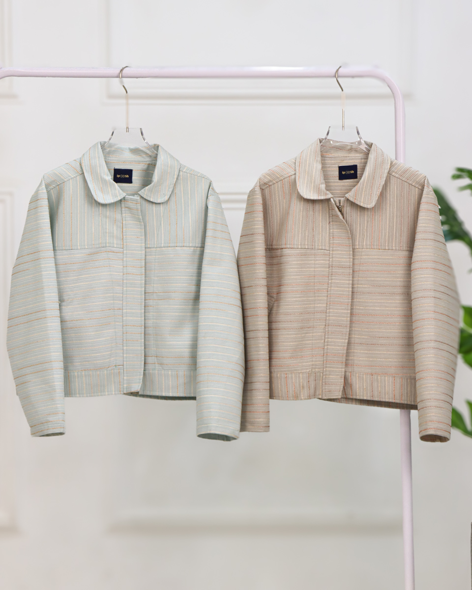 کراپ کت زنانه آیپوش مدل پارچه راه راه ریز، ترکیبی از استایل مینیمال و ظرافت طراحی است.