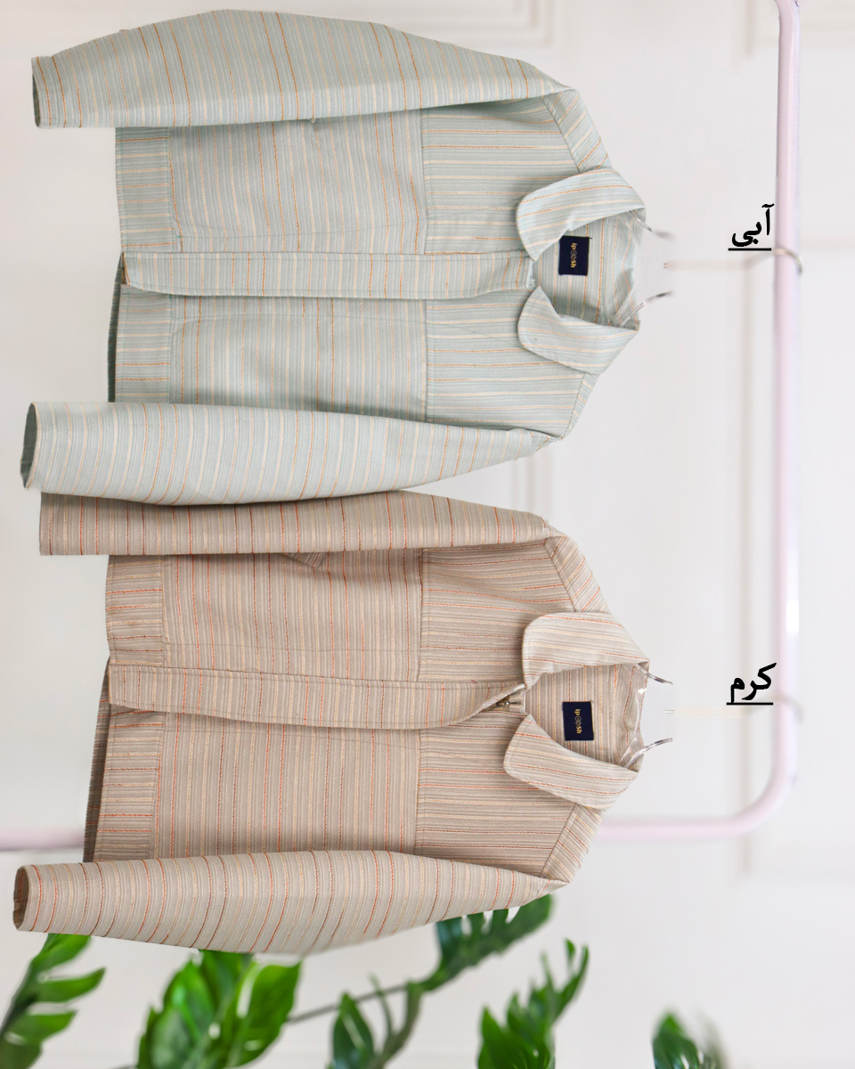 - جنس: پارچه با طرح راه راه ریز و دوخت ظریف
