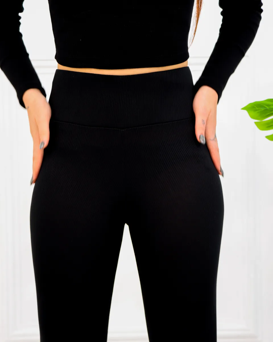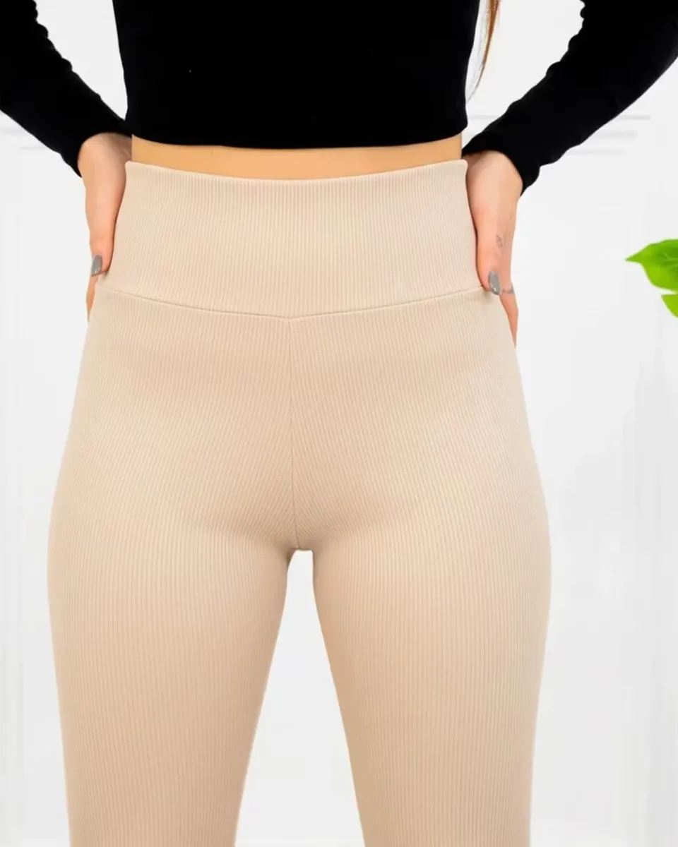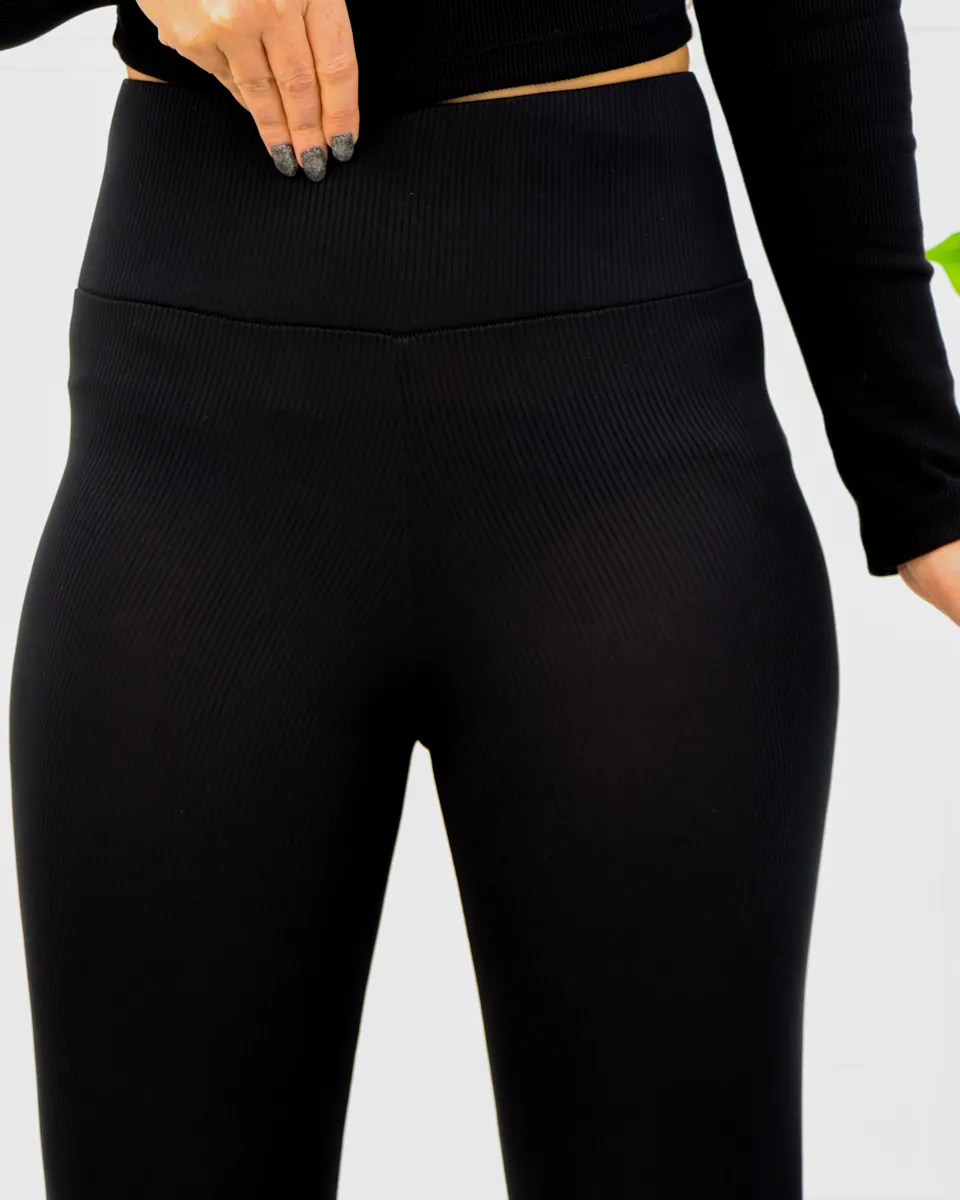 - طراحی کمر گنی: مهمترین ویژگی این لگ، کمر بسیار پهن و محکم آن است. این طراحی هوشمندانه، مانند یک گن ملایم عمل کرده و بدون ایجاد فشار نامطلوب، به خوبی ناحیه کمر را پوشش داده و به صافتر دیده شدن شکم و پهلو کمک میکند.