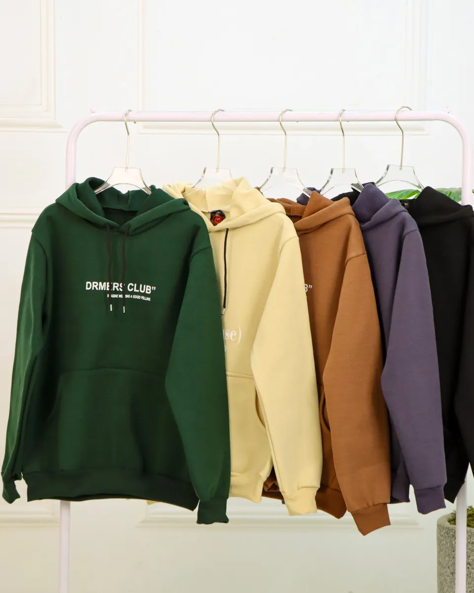 • چاپ باکیفیت: نوشته “DRM’ERS CLUB” با فونتی ساده و مدرن روی سینه چاپ شده که در عین سادگی، به هودی شخصیت می‌بخشد.