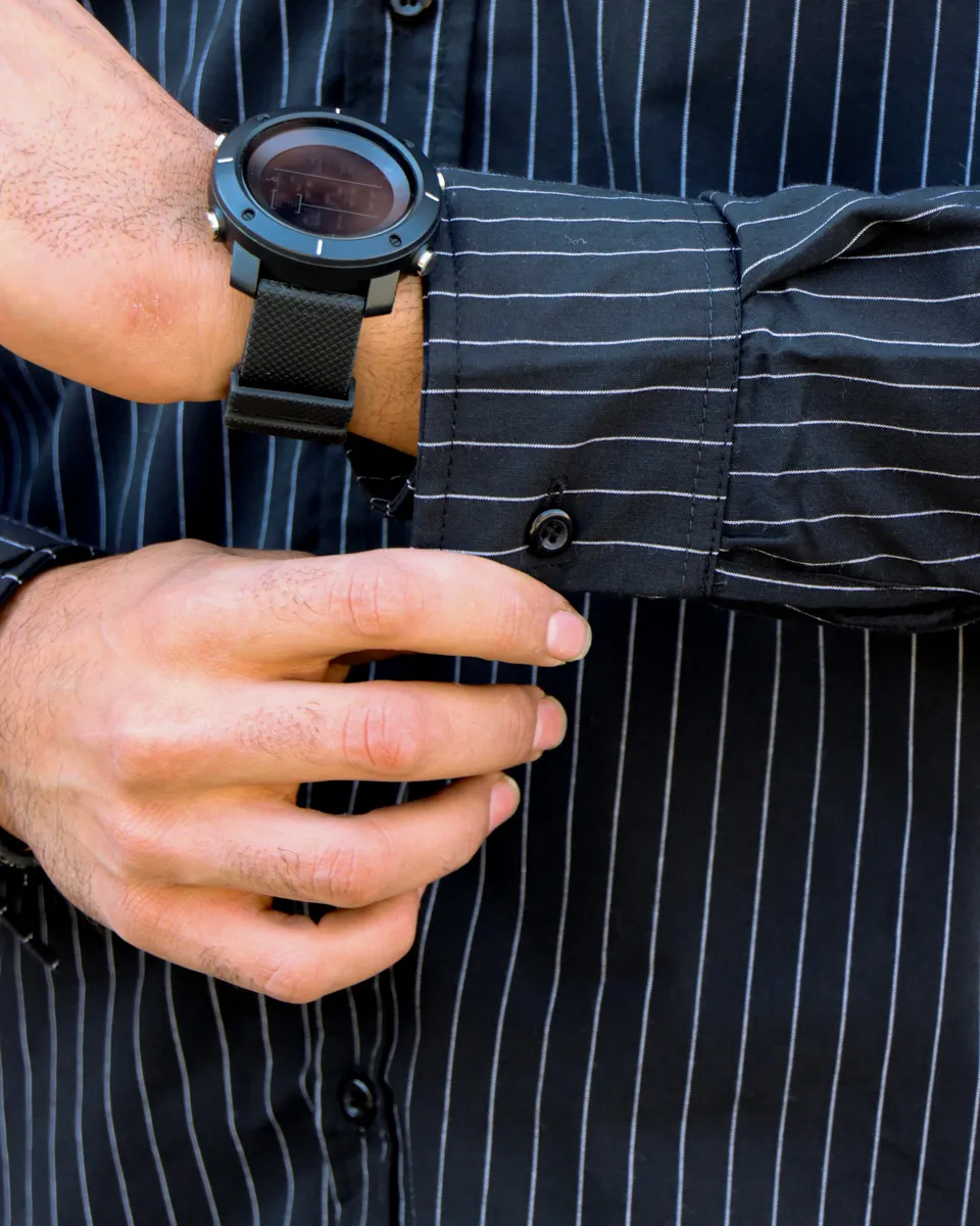 - یقه و سرآستین استاندارد: یقه مردانه کلاسیک و سرآستینهای تک دکمه، ظرافت و وقار را به طراحی کژوال این پیراهن اضافه میکنند.