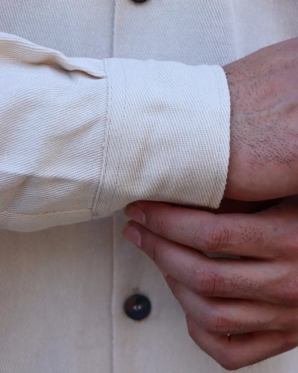 پارچه کتان ضخیم و گرم بالا، آن را به گزینهای ایدئال برای روزهای خنک پاییز تبدیل کرده و دوخت مرتب و خوشفرم آن باعث ایست عالی روی تن میشود. طراحی کلاسیک با دکمهسراسر و جیب سینه، ظاهر رسمی و نیمهرسمی شما را تکمیل میکند.