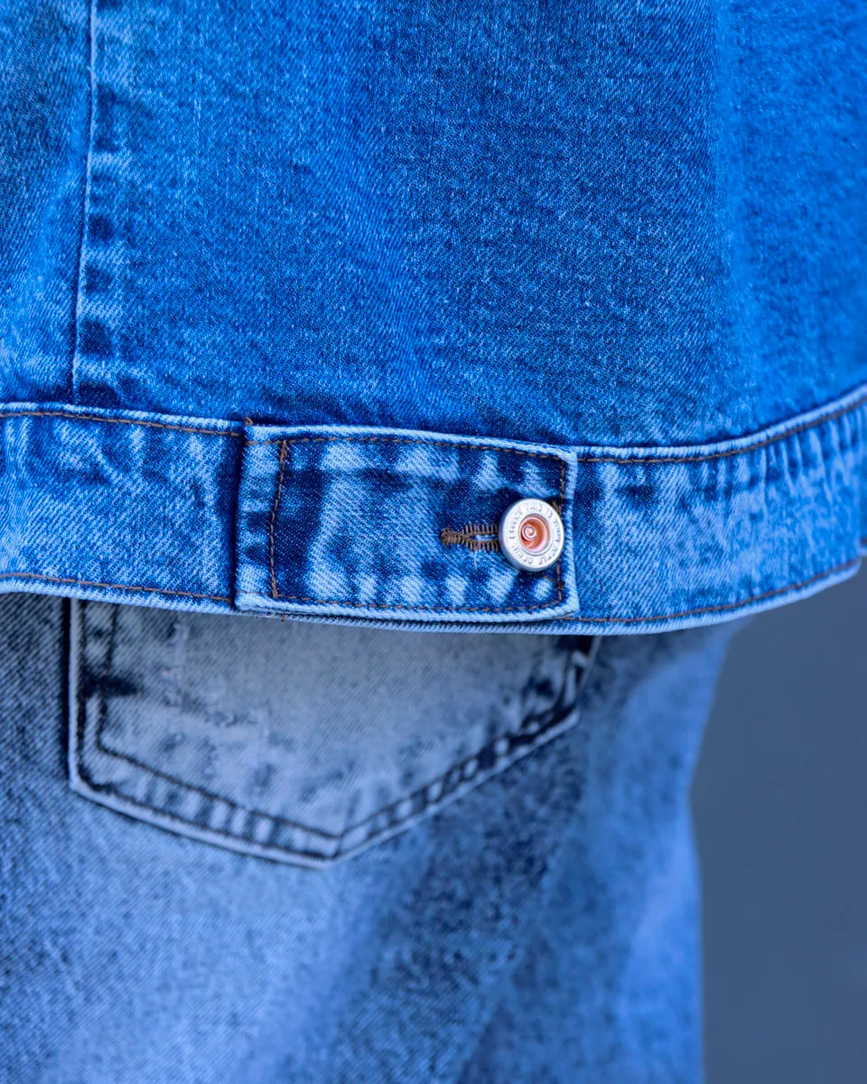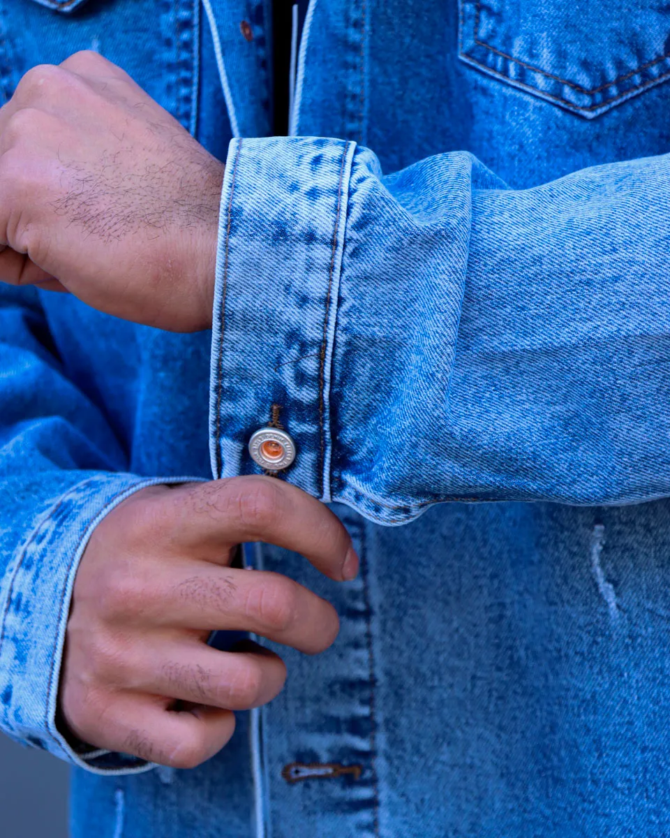 این کت جین بر اساس طراحی نمادین کتهای “Trucker” ساخته شده و جزئیات آن گویای کیفیت بالای آن است: