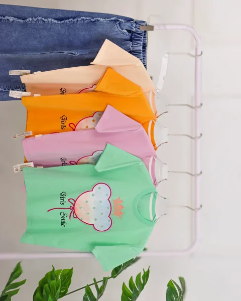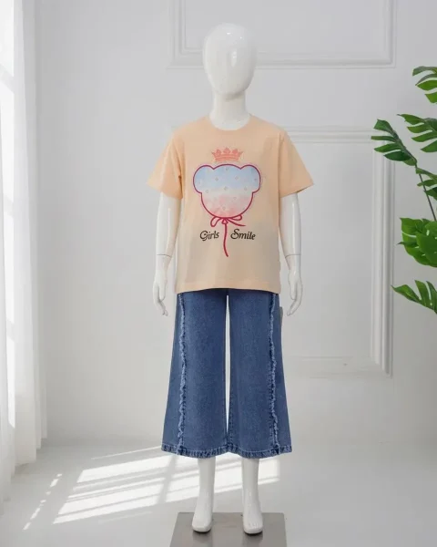 ست تی شرت نگین دار و شلوار جین دخترانه 1136
