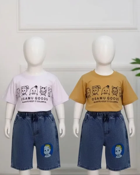 ست تی شرت پنبهای چاپی و شلوارک جین 1135