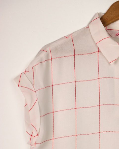 شومیز حریر چهارخانه قرمز 0529